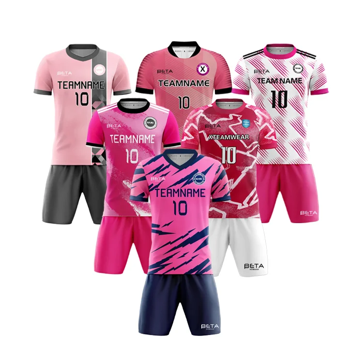 Free Prints Top Men Custom Pink Football Teams Soccer T-shirts Sets Kids Uniformes Shirt De Futbol Soccer Uniforms From China