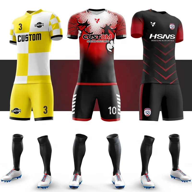 Wholesale 100% Polyester Cheap Sublimation Camisetas Football Jerseys Kits Custom Mens Soccer Uniforms Soccer Wear Set With Logo